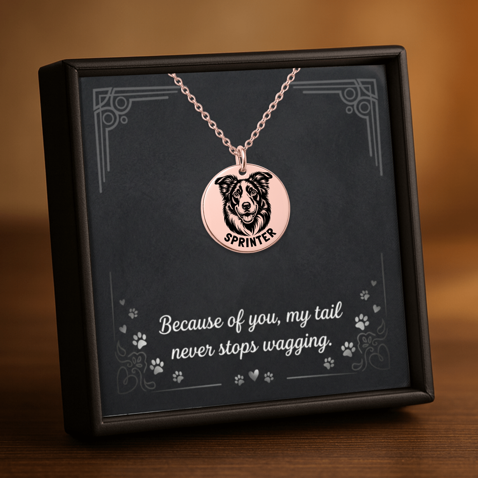 Design your personalized sweet Border Collie custom necklace with your choice of engraved name, special date, or heartfelt message. This laser-engraved dog-themed necklace comes beautifully packaged in a gift-ready jewelry box, complete with a sweet message card. A perfect one-of-a-kind gift for dog owners. This dog mon pet necklace makes a thoughtful present for birthdays, Christmas, Mother’s Day, Pet Memorial, or any special occasion.