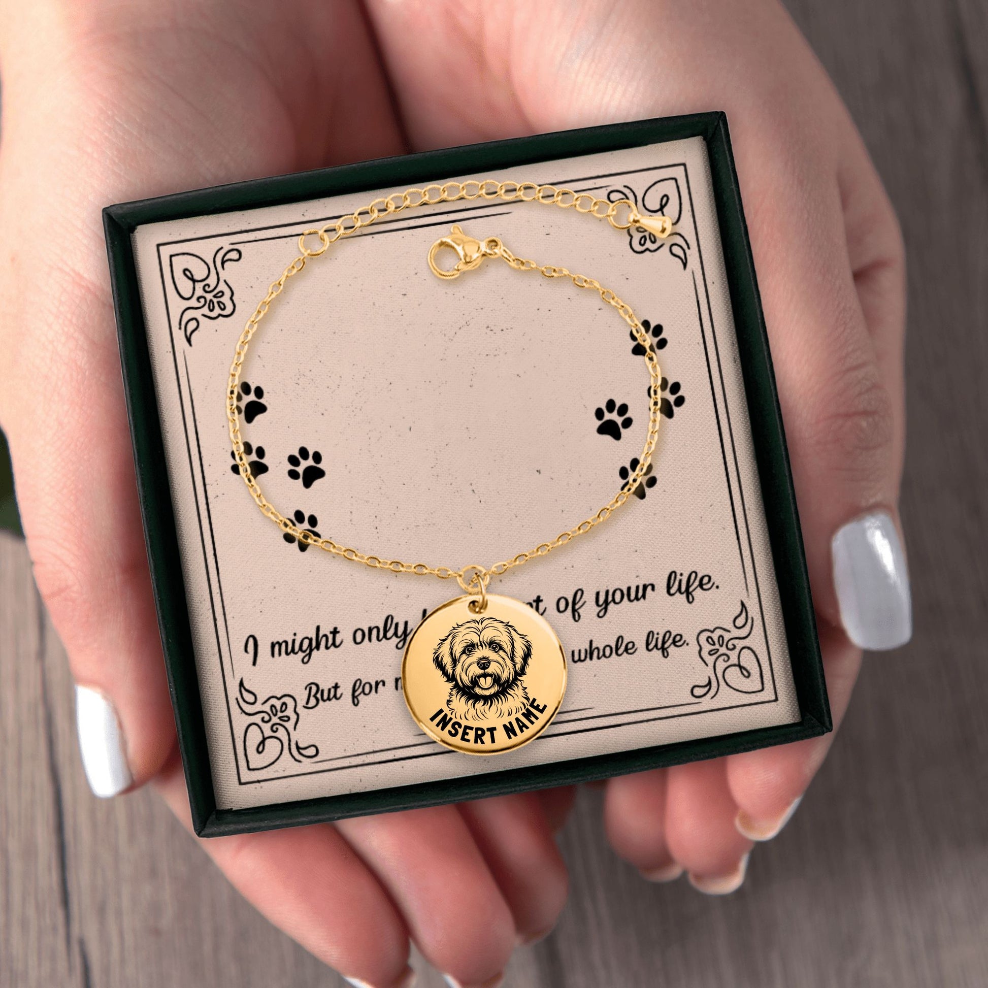 Personalized Coton de Tulear engraved bracelet with jewelry gift box and message card