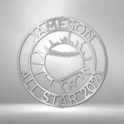Personalized Baseball Wall Name Metal Sign - Custom Baseball Steel Sign Monogram