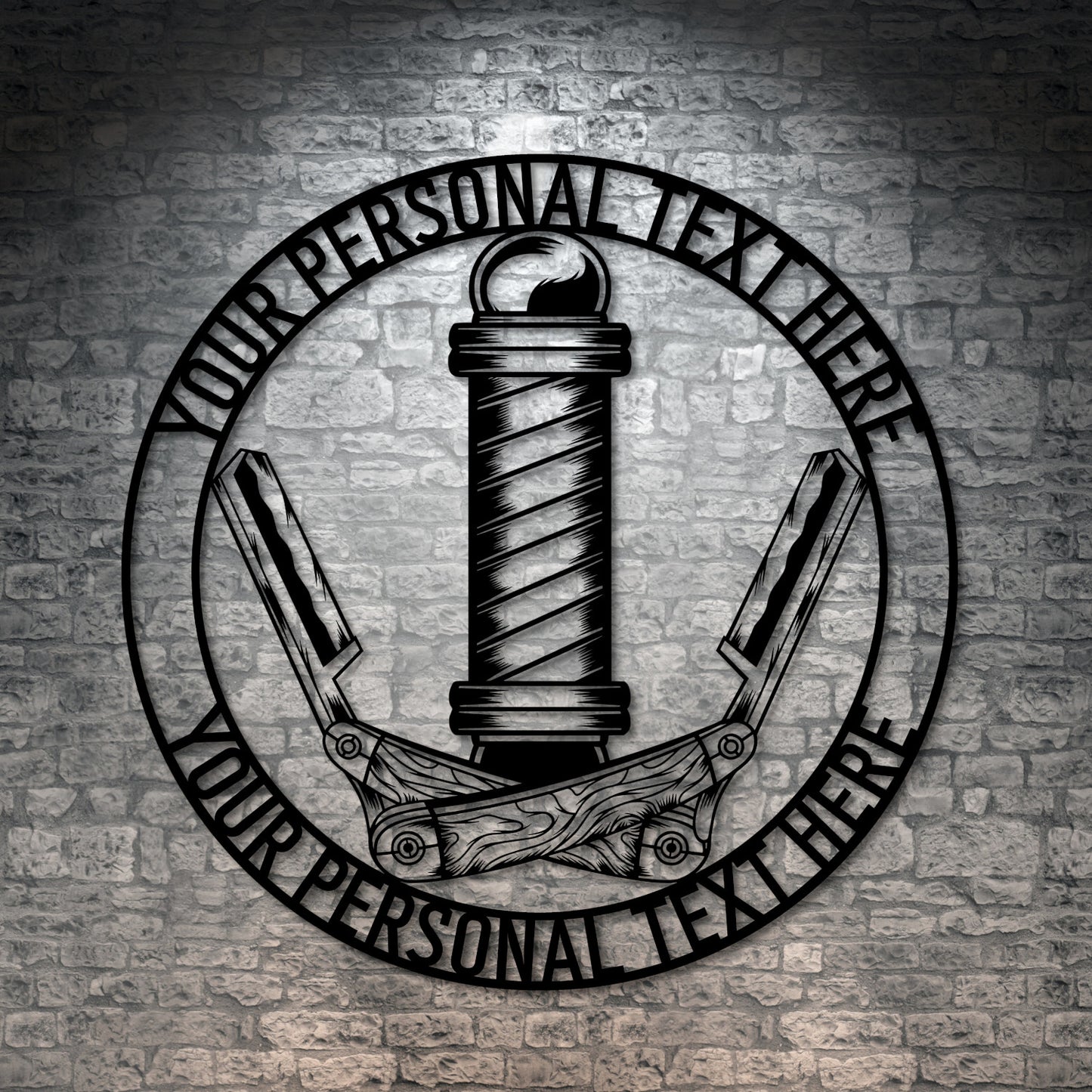 Personalized Barber Pole Shop Metal Sign Gift. Custom Barber Razor Wall Art Decor