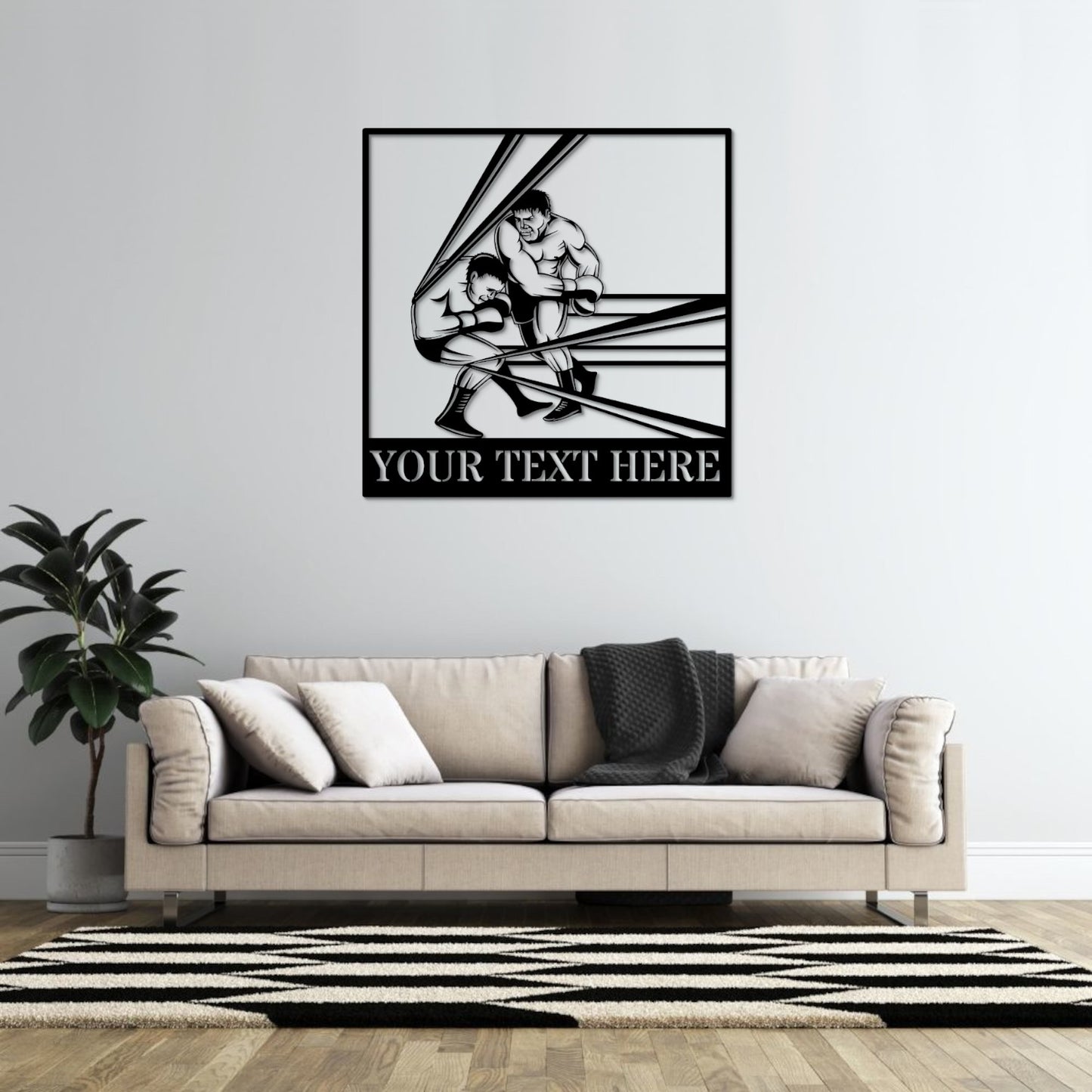 Design your personalized boxing fight metal sign today and add a unique name, text, or date. This customizable boxing arena wall decor is perfect for a gym, boxing club, or living room, and could be a one-of-a-kind fight arena wall art sign gift to yourself or a boxer. E.g. boxing monogram gift for a birthday, Christmas, anniversary, Mother's Day, Father's Day, or housewarming.