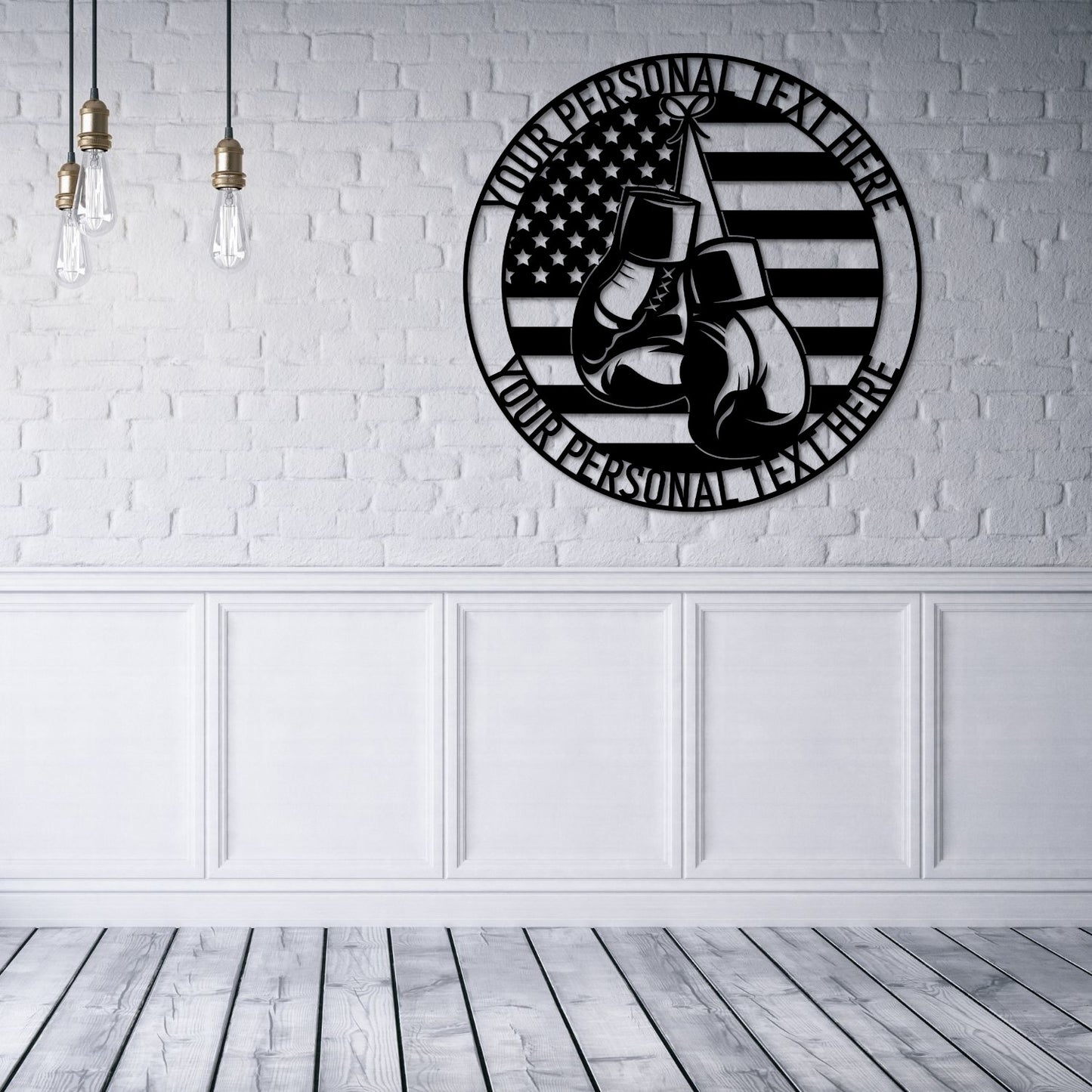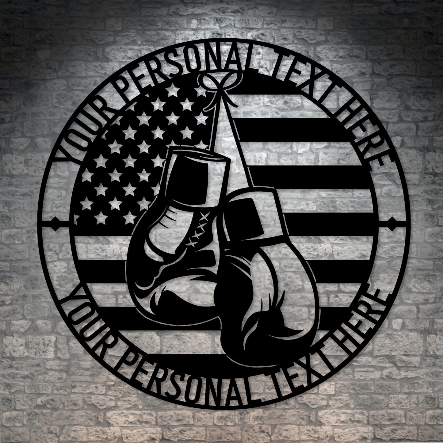 Design your personalized boxing gloves metal sign today and add a unique name, text, or date. This customizable US boxing wall decor is perfect for a gym, boxing club, or living room, and could be a one-of-a-kind American boxing wall art sign gift to yourself or a boxer. E.g. boxing monogram gift for a birthday, Christmas, anniversary, Mother's Day, Father's Day, or housewarming.