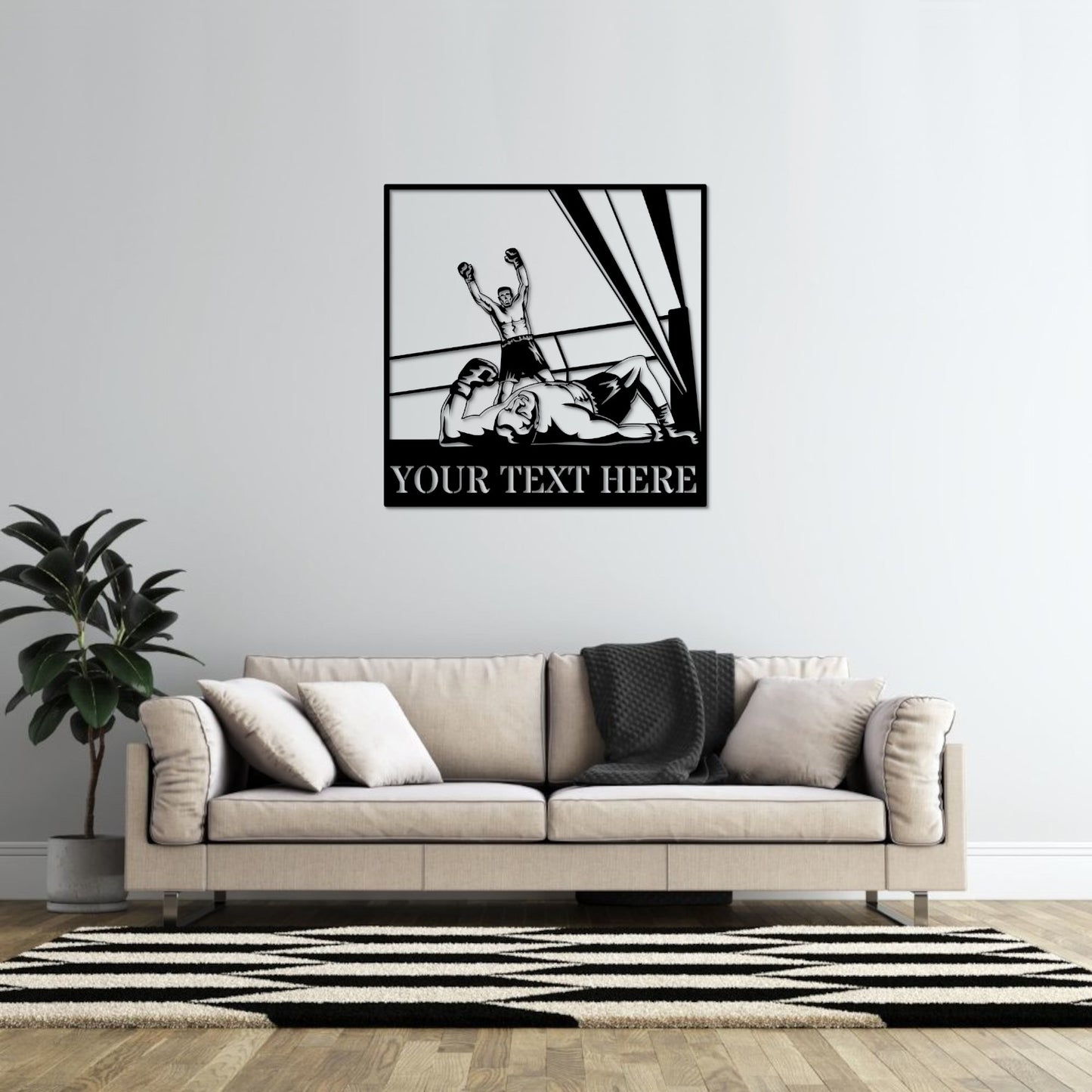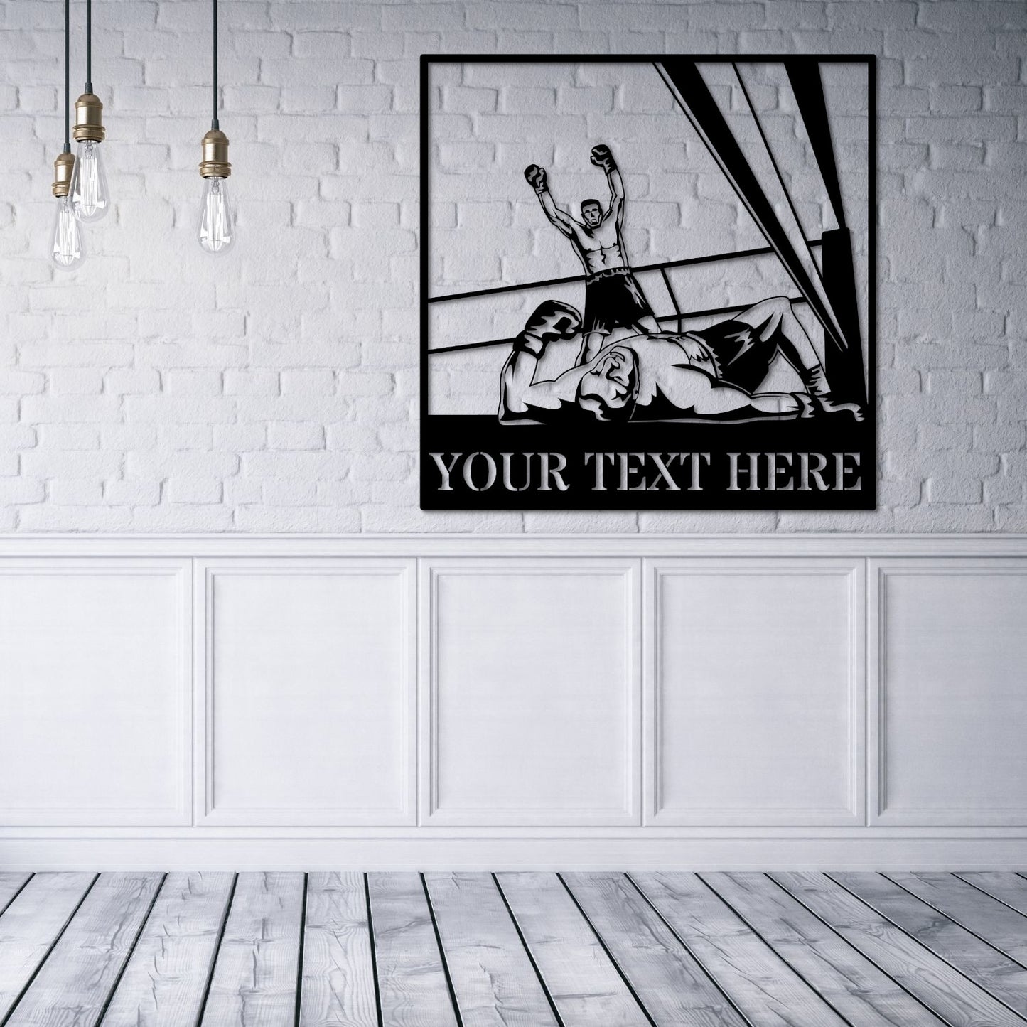 Design your personalized boxing knockout metal sign today and add a unique name, text, or date. This customizable boxing arena wall decor is perfect for a gym, boxing club, or living room, and could be a one-of-a-kind fight arena wall art sign gift to yourself or a boxer. E.g. boxing monogram gift for a birthday, Christmas, anniversary, Mother's Day, Father's Day, or housewarming.