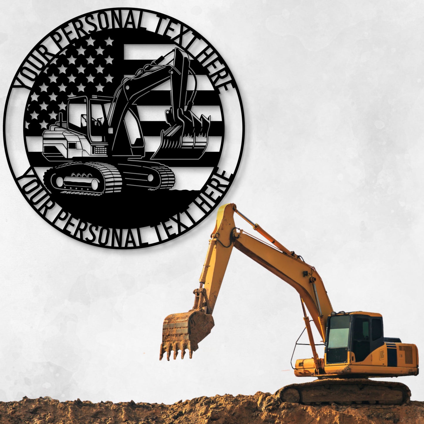 Design your personalized US excavator metal sign today and add a unique name, date, or message. This customizable American construction worker wall decor is the perfect display for a garage, shop, man cave, office, or living room, and could be a one-of-a-kind patriotic wall art sign gift to yourself or an excavator lover. E.g. heavy machinery monogram gift for a birthday, Christmas, Anniversary, Retirement, Father's Day, or housewarming.