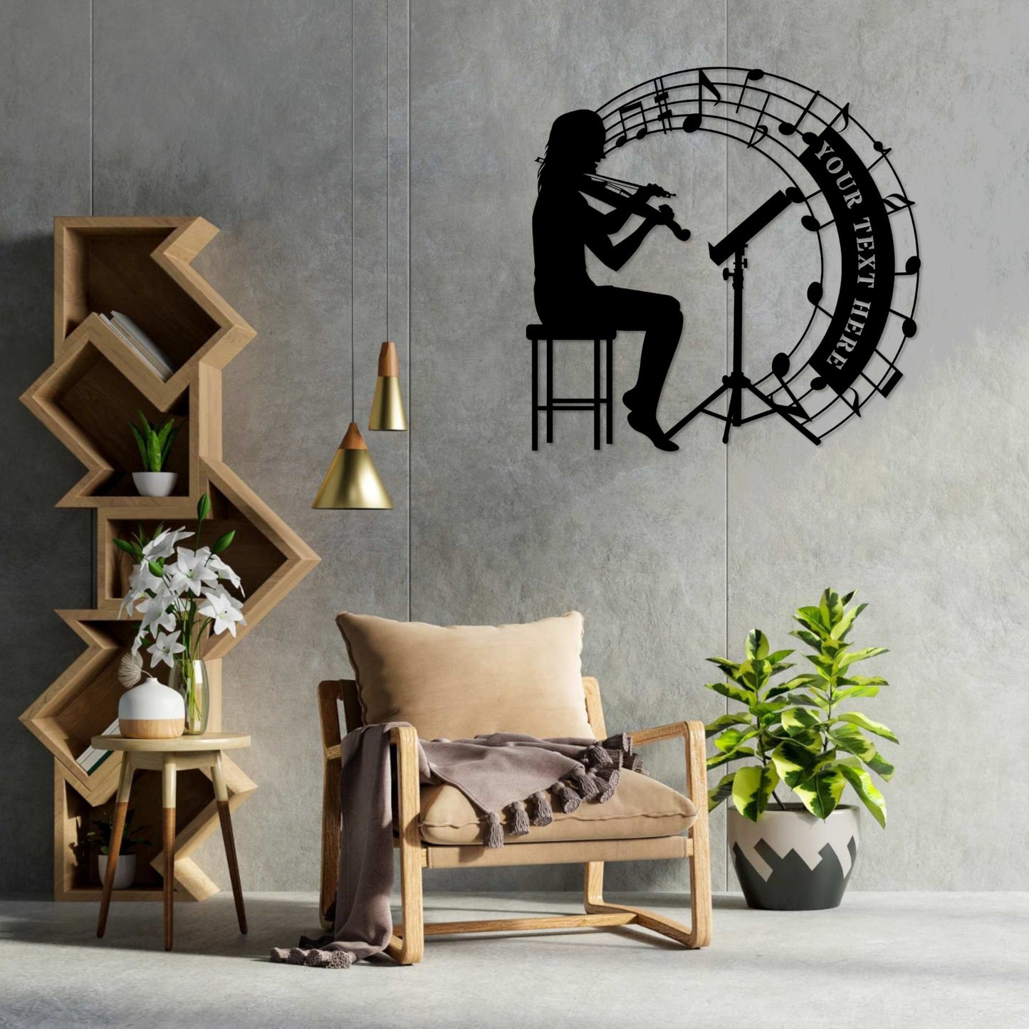 Design your personalized female violin player metal sign today and add a unique name, date, or message. This customizable violinist wall hanging is the perfect display for a music room, office, bedroom, kid's room, or living room, and could be a one-of-a-kind wall art sign gift to yourself or a loved one. E.g. monogram gift for a Birthday, Christmas, Anniversary, Mother's Day, or Housewarming.